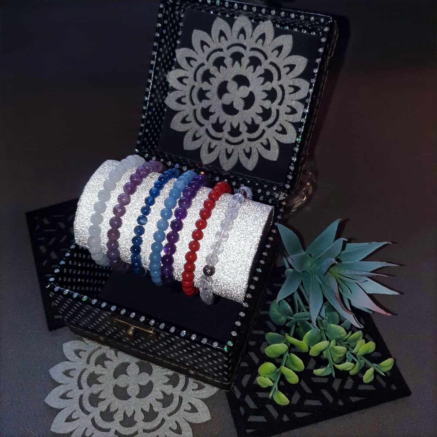 Passionnée par la création de bijoux, Élisabeth Steux est la propriétaire de l'entreprise Clochettes, Grimoires & Chandelles qu'elle a créée pour donner un nouveau souffle à sa carrière. Elle consacre son temps à la conception d'objets uniques en pierres semi-précieuses.